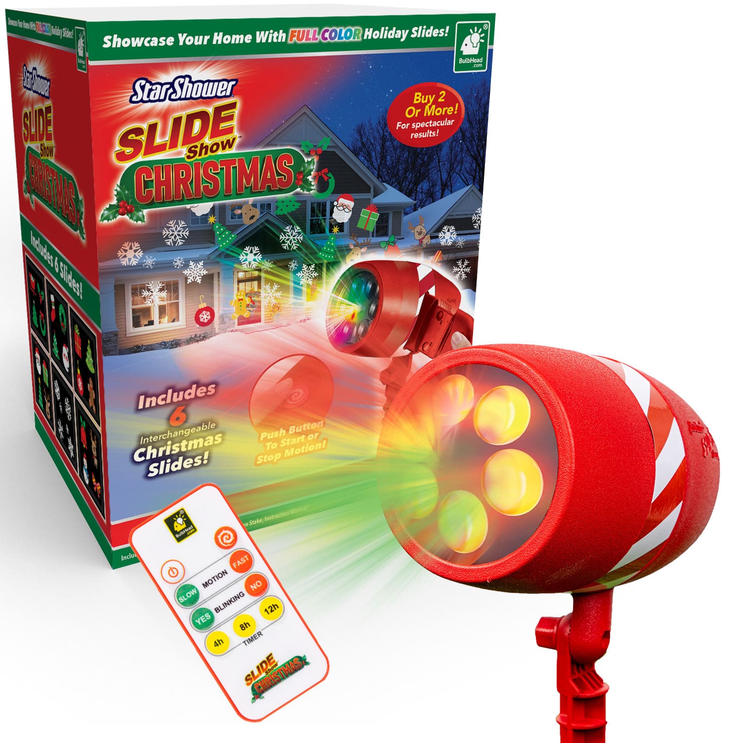 Star Shower lights come in various models, offering different patterns, colors, and motion settings. Familiarize yourself with these options to select the best way to enhance your wreath's features. Star Shower Slide Show projects full-color LED animations, while the Ultra 9 projects thousands of red and green stars.