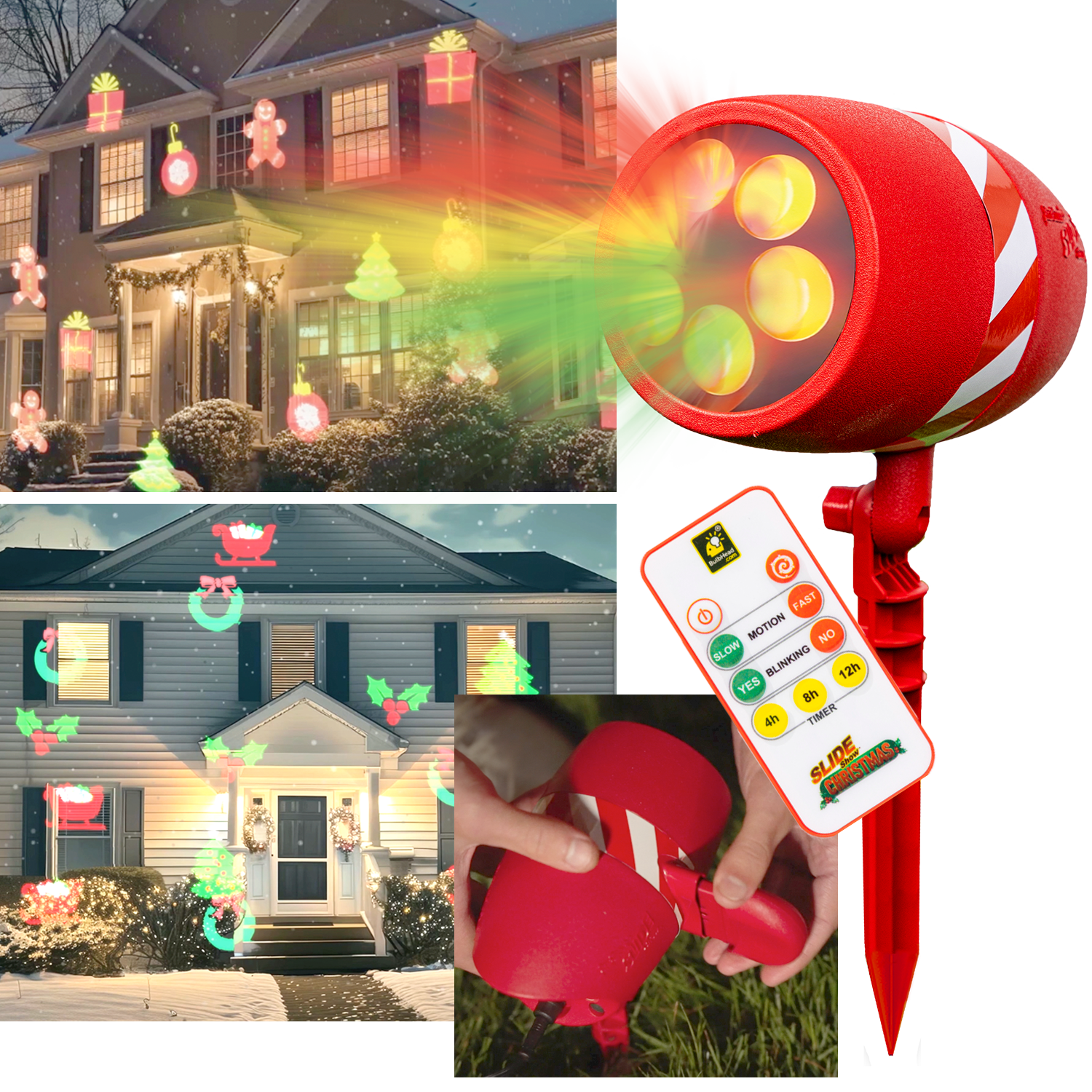 Así es, decora toda tu casa con hermosas imágenes navideñas a todo color que le den vida a las fiestas. ¡Solo tienes que clavarlas en el suelo, enchufarlas y ver cómo tu casa se anima con el espíritu navideño! Elige entre 6 diapositivas, que muestran todo, desde Papá Noel y sus renos hasta copos de nieve en cascada.