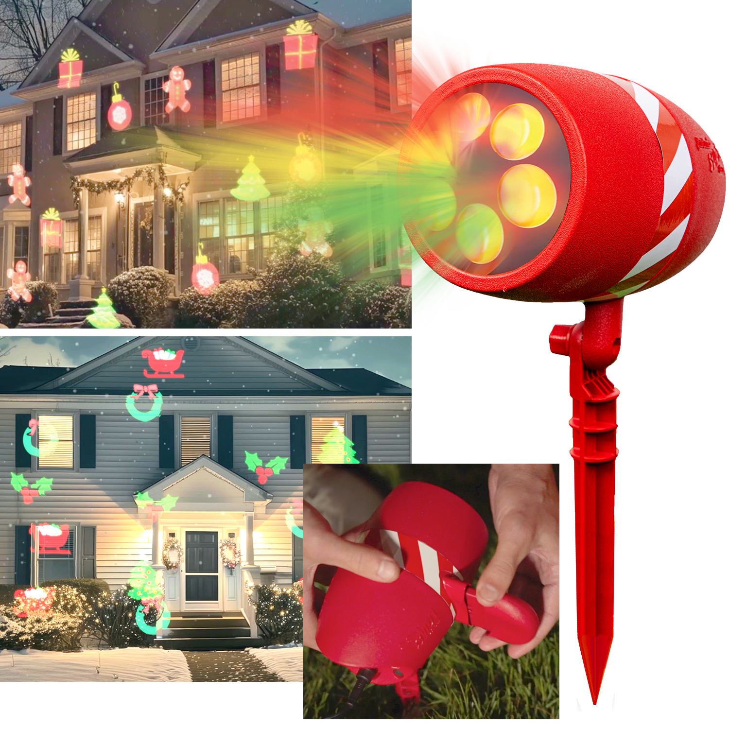 Así es, decora toda tu casa con hermosas imágenes navideñas a todo color que le den vida a las fiestas. ¡Solo tienes que clavarlas en el suelo, enchufarlas y ver cómo tu casa se anima con el espíritu navideño! Elige entre 6 diapositivas, que muestran todo, desde Papá Noel y sus renos hasta copos de nieve en cascada.