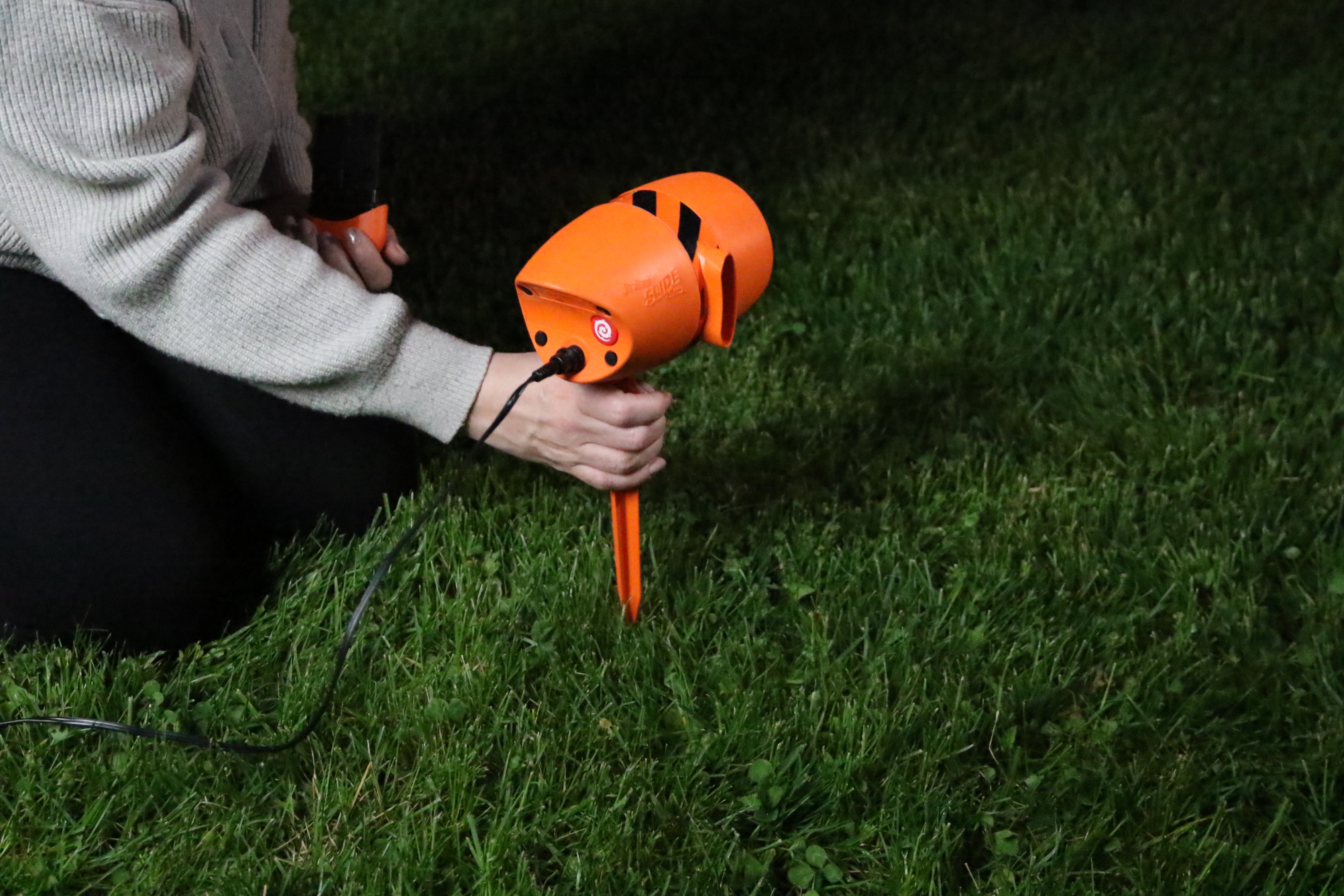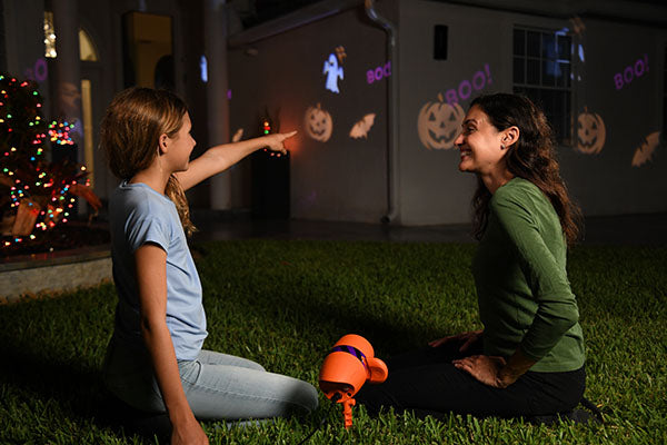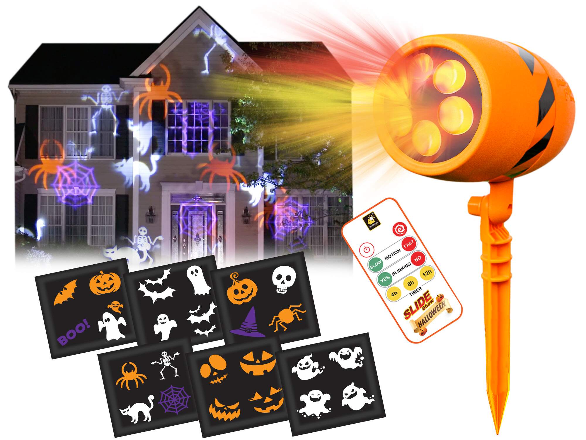 Just stake it into the ground, plug it in and shower your home with ghoulish ghosts, creepy crawly spiders, or even Jack-O'-Lanterns. Choose from 6 different slides for the perfect spooky ambiance!