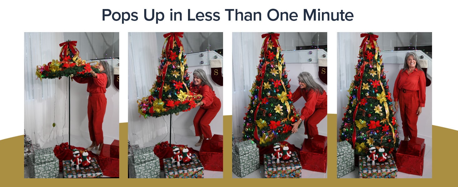 - EFFORTLESS SETUP IN MINUTES: No more complicated assembly! Simply lift, and it expands into a lush, 7-foot holiday masterpiece in minutes. Perfect for both beginner decorators and seasoned pros
