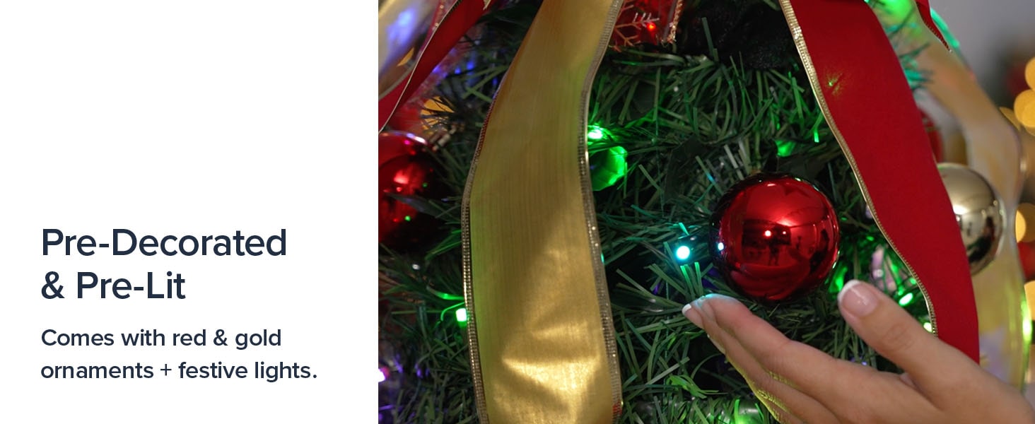 - FULLY DECORATED & READY TO SHINE: Say goodbye to hours of decorating! This elegant tree comes pre-decorated with stunning ornaments, festive bows, and ribbons, ensuring a polished and professional look right out of the box