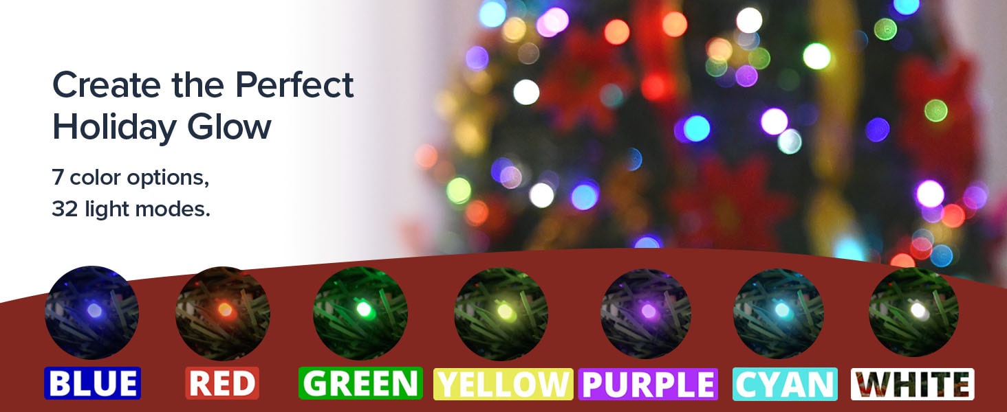 - REMOTE CONTROL WITH 7 COLORS & 32 LIGHT MODES: Take full control of your holiday lighting setup. The included remote lets you switch between 7 colors and 32 dazzling modes, offering endless customization