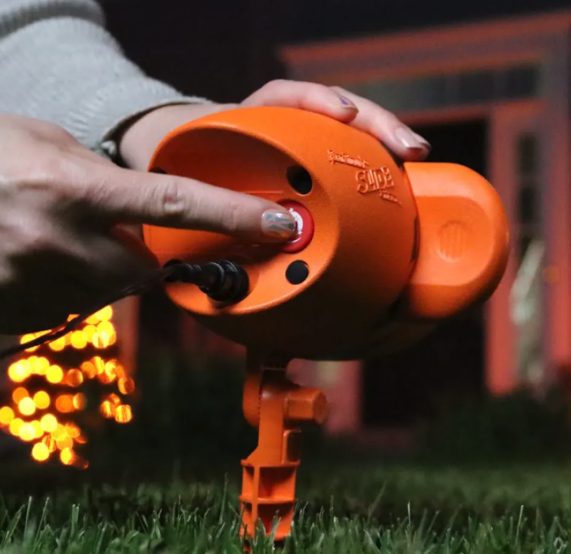 Ready to be the envy of all your neighbors? Forget lugging out the storage bins full of Halloween decorations! Our new Slide Show Halloween is the fastest and easiest way to decorate your entire home with full-color images in seconds. Just stake it into the ground, plug it in and shower your home with ghoulish ghosts, creepy crawly spiders, or even Jack-O'-Lanterns. Choose from 6 different slides for the perfect spooky ambiance!